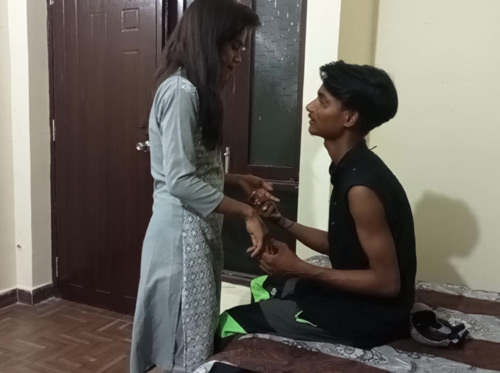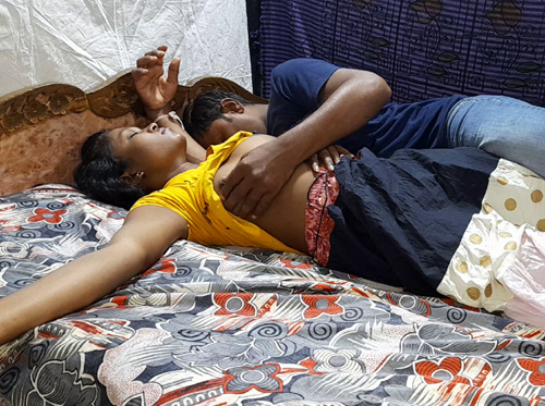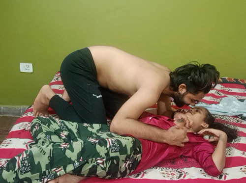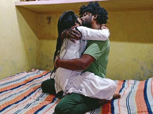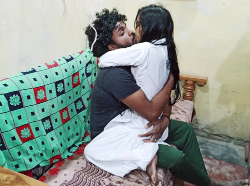 Desi college couple comes home for some fun! They kiss all over and fondle each other.